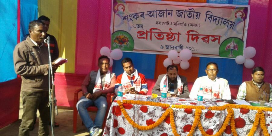 নগাঁওঃ বটদ্ৰৱা সমষ্টিৰ দলংঘাটত এবছৰ পূৰ্বে মঙলবাৰৰ দিনটোতে শিক্ষাক ভালপোৱা কেইগৰাকীমান লোকে স্থাপন কৰিছিল শংকৰ-আজান জাতীয় বিদ্যালয় নামৰ এখন শিক্ষানুষ্ঠান৷ চাওঁতে চাওঁতে শিক্ষানুষ্ঠান খনে এবছৰ সম্পূৰ্ণ কৰিলে৷ মঙলবাৰে শিক্ষানুষ্ঠান খনৰ প্ৰথমটো প্ৰতিষ্ঠা দিৱস পালন কৰা হয়৷