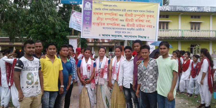 ধেমাজিঃ ধেমাজি বালিকা মহাবিদ্যালয়ৰ ছাত্ৰ একতা সভাৰ নিৰ্বাচনৰ ফলাফল আজি ঘোষণা কৰে৷ বালিকা মহাবিদ্যালয় খনৰ প্ৰায় ৭টা পদবীত বিনা প্ৰতিযোগিতাৰে প্ৰাৰ্থীয়ে জয়ী হৈছিল৷