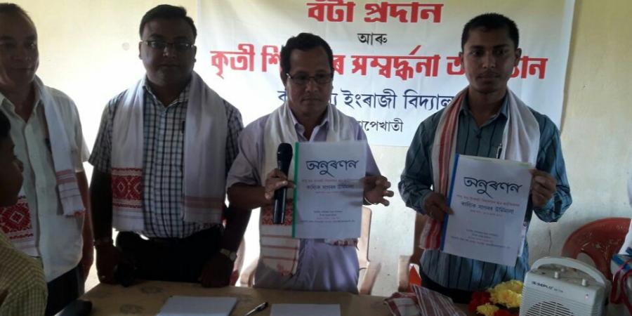 চৰাইদেউঃ চৰাইদেউ জিলাৰ সদৰ সোণাৰিৰ কানু মধ্য ইংৰাজী বিদ্যালয়ৰ বাৰ্ষিক ক্ৰীড়া সপ্তাহ আৰু সাংস্কৃতিক সমাৰোহৰ বঁটা বিতৰণ আৰু কৃতী শিক্ষকৰ সম্বৰ্ধনা অনুষ্ঠানত আজি এখন প্ৰাচীৰ পত্ৰিকাৰ লগতে এখন কাব্যালোচনী উন্মোচন কৰা হয়৷