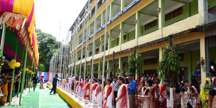 ইয়াৰ বাবেই মহাবিদ্যালয়খনিয়ে উদযাপন কৰিছে ৰূপালী জয়ন্তী বৰ্ষ৷ দেওবাৰে এদিনীয়া কাৰ্যসূচীৰে ৰূপালী জয়ন্তী বৰ্ষৰ শুভাৰম্ভ কৰা হয়৷ কাৰ্যসূচী অনুসৰি পুৱা মহাবিদ্যালয় পৰিচালনা সমিতিৰ সভাপতি পুলিন চন্দ্ৰ চৌধুৰীয়ে মূল পতাকাখন উত্তোলন কৰাৰ সমান্তৰালভাৱে বিভিন্ন ক্ষেত্ৰৰ ২৫ গৰাকী ব্যক্তিয়ে ২৫ খন পতাকা উত্তোলন কৰি কাৰ্যসূচীৰ শুভাৰম্ভ কৰে৷ লগে লগে ২৫ টা শংখ, ২৫ যোৰ ভোৰ-তাল আৰু ২৫ টা বৰ কাঁহৰ মংগল-বাদ্য ধ্বনিৰে চৌদিশ ৰজনজনাই উঠে৷
