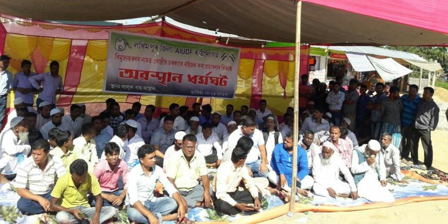 মুদ্ৰা নীতিৰ বিৰোধীতা কৰি লখিমপুৰত অৱস্থান ধৰ্মঘট