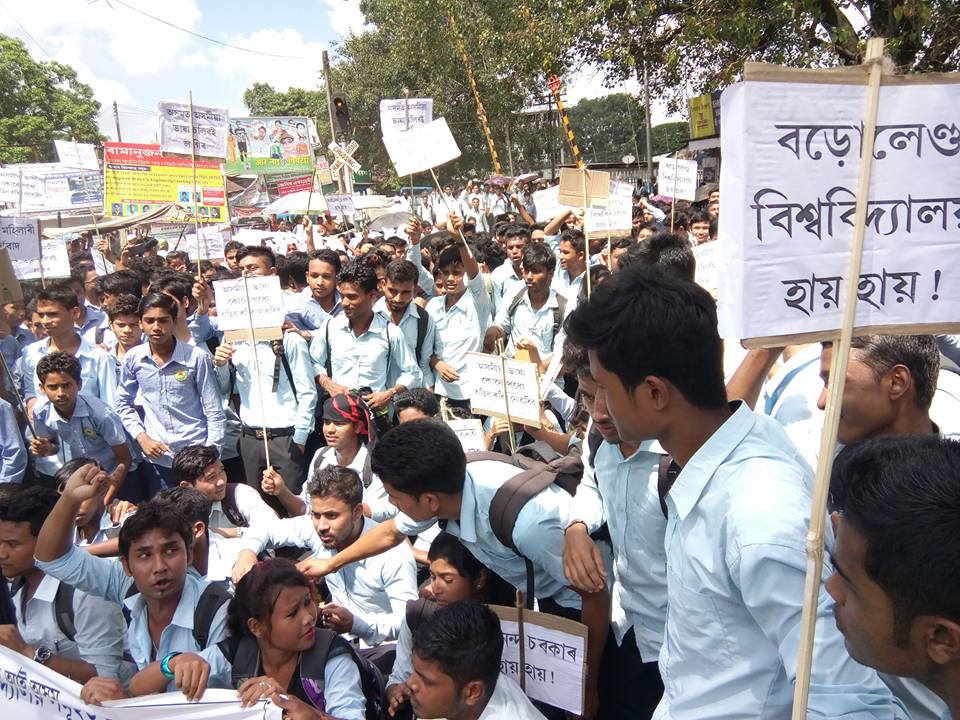 ৰাজ্য চৰকাৰ, বিটিচি প্ৰশাসন, বড়োলেণ্ড বিশ্ববিদ্যালয়ৰ বিৰুদ্ধে শ্ল’গান দি ছাত্ৰ-ছাত্ৰীসকলে উত্তাল কৰি তোলে গোৰেশ্বৰৰ আকাশ বতাহ৷ প্ৰতিবাদকাৰী ছাত্ৰ-ছাত্ৰীসকলে পথত টায়াৰ জ্বলাই গড়কাপ্তানি পথৰ লগতে ৰেল পথ অৱৰোধ কৰে৷অসমত অসমীয়া ভাষা থাকিবই, হাগ্ৰামা মুৰ্দাবাদ, বড়োলেণ্ড বিশ্ববিদ্যালয় মুৰ্দাবাদ, যদি হোৱা অসমীয়া আমাৰ লগত যোগ দিয়া, অসমীয়া ভাষা বাতিল কৰিব দিয়া ন’হব আদি শ্ল’গানেৰে গোৰেশ্বৰৰ আকাশ বতাহ কপাই তোলে৷