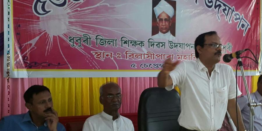 গোলকগঞ্জঃ আজি ৫৬ সংখ্যক শিক্ষক দিৱস উপলক্ষে ধুবুৰী জিলাৰ ৫৫ গৰাকী শিক্ষক-শিক্ষয়িত্ৰীক জিলা প্ৰশাসন তৰফৰ পৰা কৃতি শিক্ষকৰ বটাঁ প্ৰদান কৰা হয়৷ বিলাসীপাৰা মহাবিদ্যালয় প্ৰেক্ষাগৃহত জিলা ভিত্তিক শিক্ষক দিৱস অনুষ্ঠানত কৃতি শিক্ষকসকলক গামোচা শৰাঁই আৰু মান পত্ৰৰে সন্মানিত কৰা হয়।