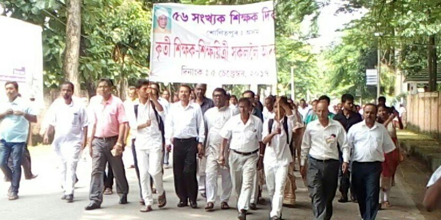 তেজপুৰঃ ভৰতৰ দ্বিতীয়গৰাকী ৰাষ্টপতি ড০ সৰ্বপল্লী ৰাধাকৃষ্ণনৰ জন্মদিন উপলক্ষে ৫ চেপ্চেম্বৰ দিনটো শিক্ষক দিৱস হিচাপে পালন কৰা হয়৷ এডাল মমবাটিৰ দৰে জ্বলি জগতত পোহৰ জ্ঞানৰ পোহৰ বিলোৱা শিক্ষকসকলৰ বাবে আজি এটা বিশেষ দিন৷ শিক্ষকৰ অশ্, কষ্ট আৰু সাধনাৰ ফলশ্ৰুতিতে সৎ মানুহৰ জন্ম হয়৷