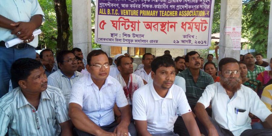 কোকৰাঝাৰঃ বিটিচি অঞ্চলৰ অপ্ৰাদেশিকৃত নিম্ন আৰু উচ্চ প্ৰাথমিক বিদ্যালয় সমুহৰ প্ৰাদেশীকৰণ আৰু কৰ্মৰত শিক্ষক-কৰ্মচাৰীসকলৰ পদ প্ৰাদেশীকৰণৰ দাবীত সদৌ বিটিচি ভেন্সাৰ প্ৰাথমিক শিক্ষক সন্থাই আজি কোকৰাঝাৰত পাঁচঘণ্টীয়া অৱস্থান ধৰ্মঘট কাৰ্যসূচী পালন কৰে।