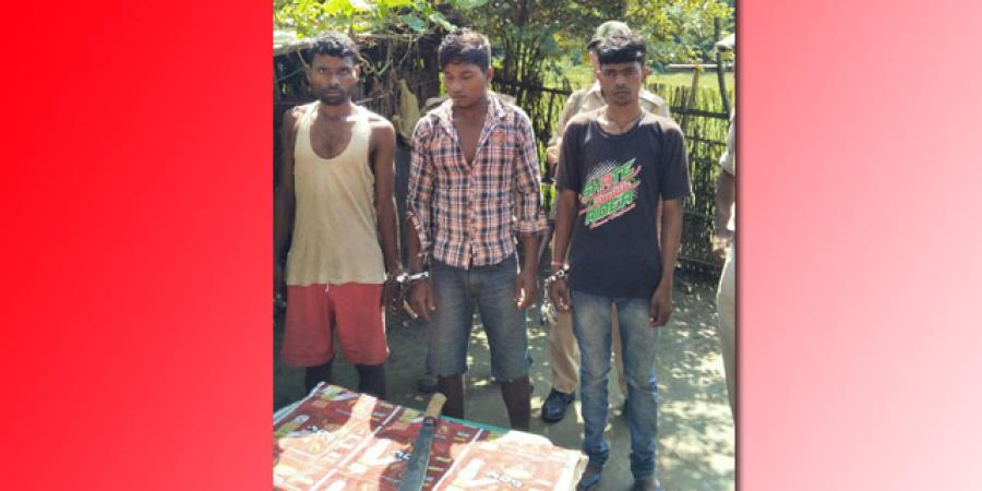 কোকৰাঝাৰঃ কোকৰাঝাৰ জিলাৰ ছালাকাটিৰ ঢোলমাৰাত যোৱা মাজনিশা আৰক্ষীয়ে অভিযান চলাই হত্যাৰ গোচৰত অভিযুক্ত তিনি গৰাকীকৈ যুৱকক গ্ৰেপ্তাৰ কৰিছে ৷ ধৃত অভিযুক্ত তিনিগৰাকী ক্ৰমে ৰাজেশ ওৰাও (২৬), মাথিয়াছ ওৰাও (২২) আৰু তুলসী ওৰাও (২৫)৷
