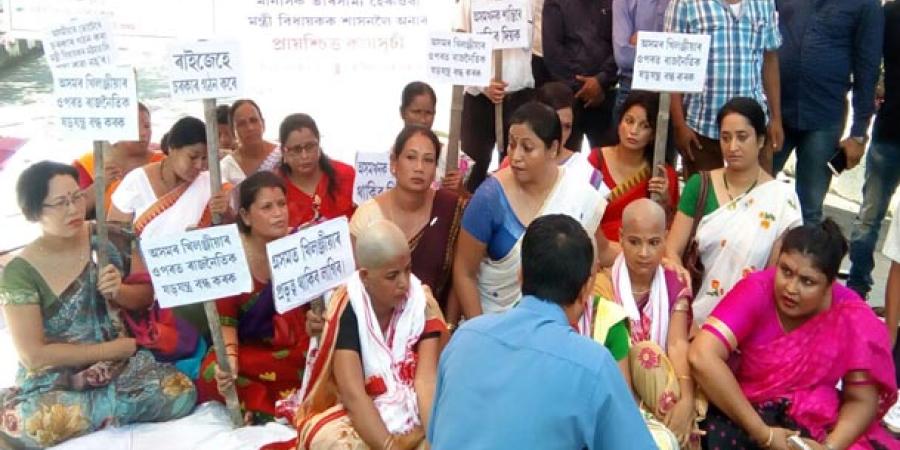 স্বাধীনতাকামী নাৰীয়ে দেখুৱাই দিলে নাৰীৰ শক্তি৷ ঘৰৰ গৃহিনী নহয়, এইবাৰ নাৰী প্ৰতিবাদৰ ভাষা হৈ ওলাই আহিল ৰাজপথলৈ৷ সেয়াও এক অনন্য ৰূপত৷ খিলঞ্জীয়াৰ হকে প্ৰতিবাদ জনাই নাৰীয়ে কৰিলে মুণ্ডন৷