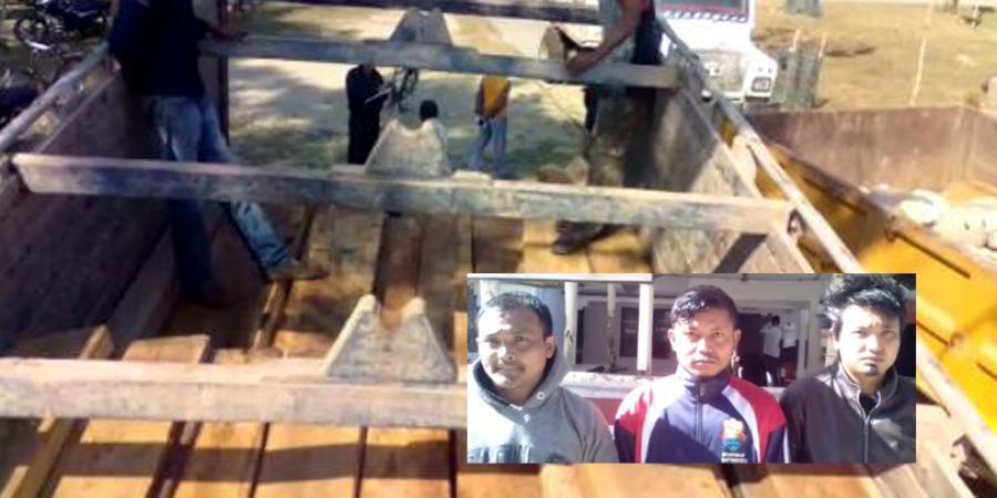 চাৰিদুৱাৰত বন বিভাগৰ অভিযানত কাঠ ভৰ্তি ট্ৰাক জব্দ